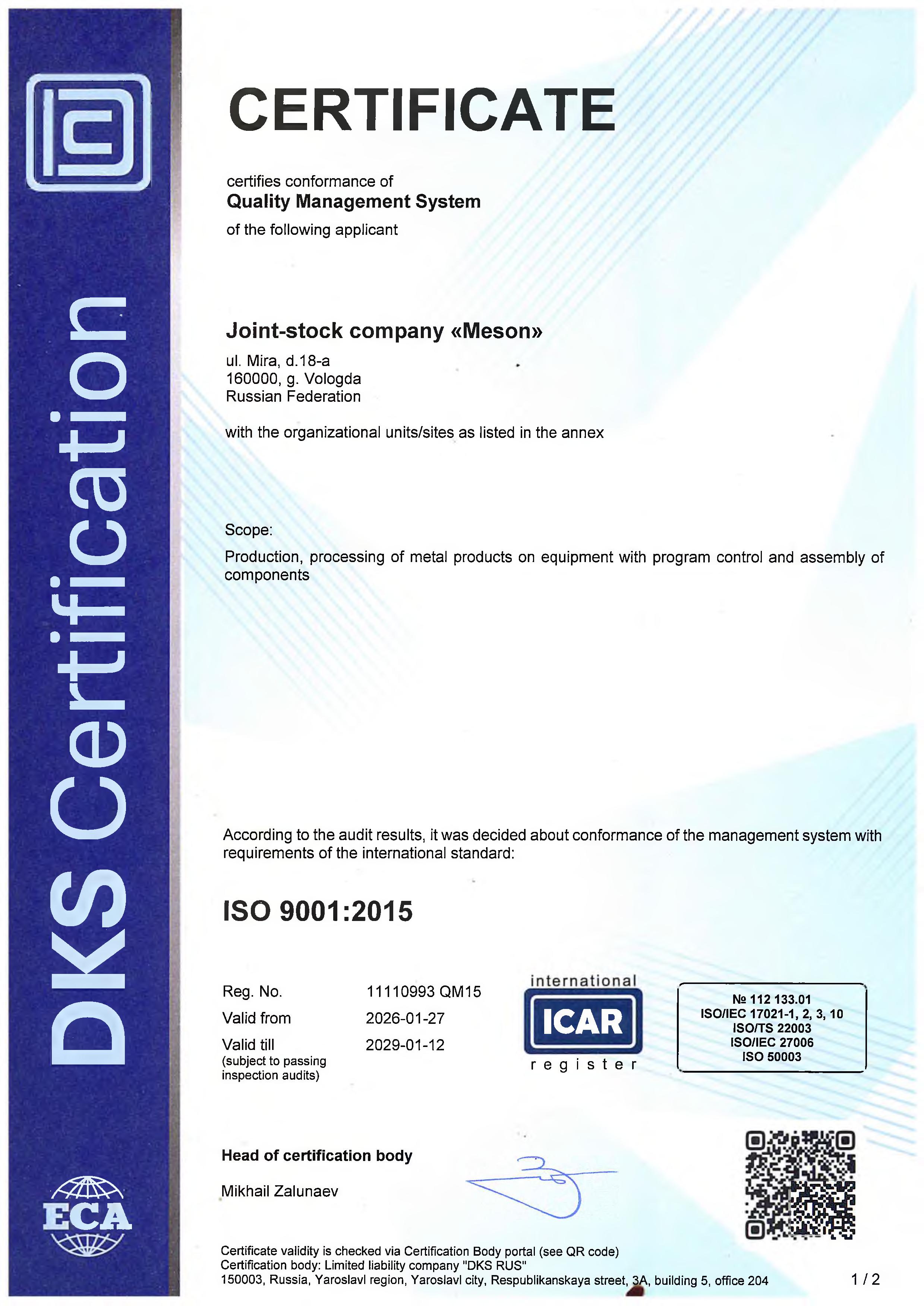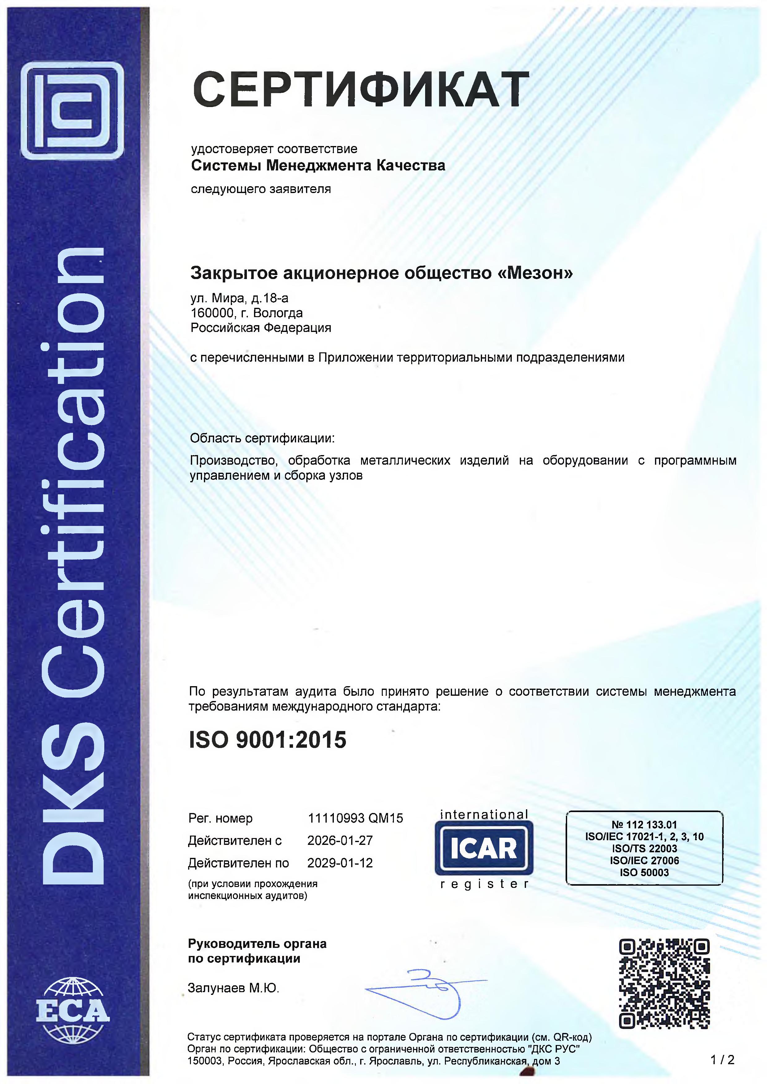 Политика ЗАО «Мезон» в области качества декларирует